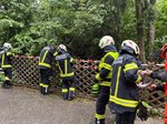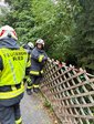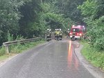 Heute wurden wir nach einem kurzen, aber kräftigen Unwetter zu einem über die Straße gefallenen Baum nach Marbach gerufen. Unglücklicherweise fiel der Baum genau auf ein Brückengeländer, welches dadurch leider zu Bruch ging. Nach dem Zerkleinern des Baumes und dem Reinigen der Fahrbahn sicherten wir das fehlende Geländerelement provisorisch mittels eines Holzgatters.
